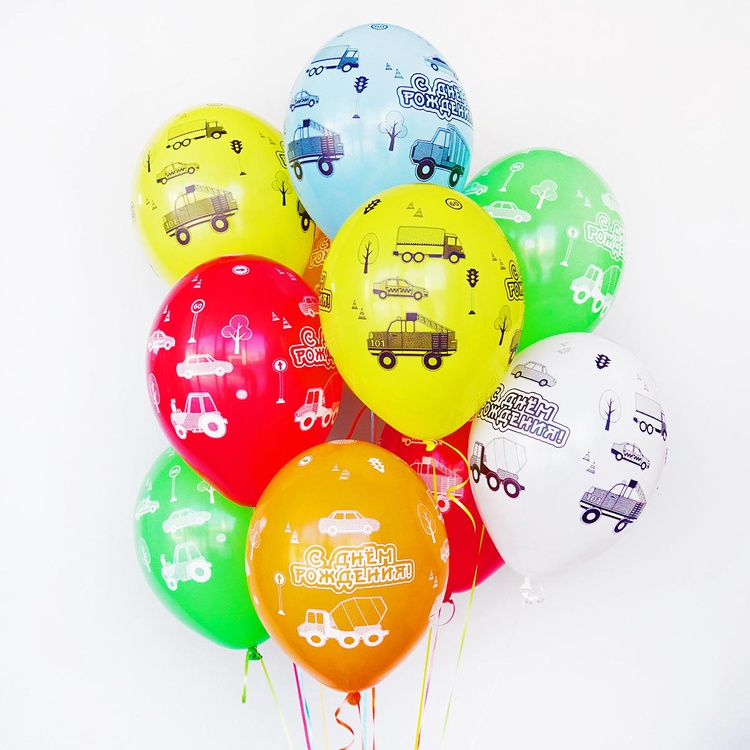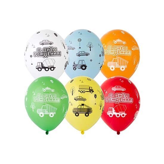 Высококачественный шар из натурального латекса. Ассорти из 6 цветов в случайном соотношении), одного типа - пастель - матовый оттенок цвета. Шары с рисунком на тему "День Рождения", "Машинки". Воздушные шары изготавливаются из экологически безопасного 100%-ного натурального латекса. В окружающей среде разлагаются на безопасные компоненты примерно с той-же скоростью, как обычные листья деревьев. После использования лопнуть и утилизировать как бытовой отход.