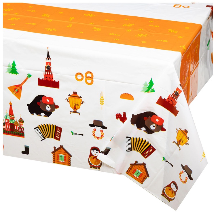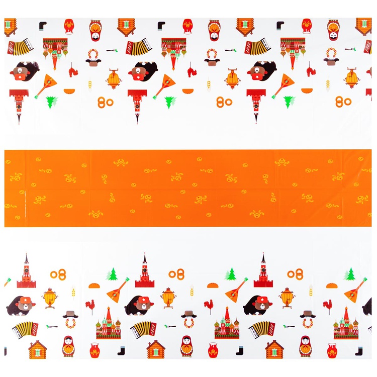 Скатерть полиэтиленовая Русский Стиль, размер 130х180см. Используется совместно с другими элементами коллекции (тарелки, стаканы, салфетки ) как украшение стола или по своему непосредственному назначению.