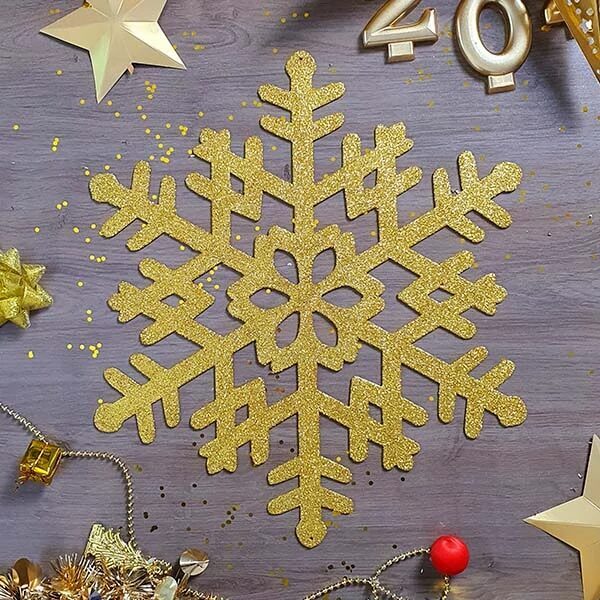 Снежинка пластик блеск золотая 37см