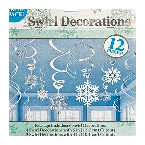 Блестящие и белые спиральки с подвешенными к ним декорациями - снежинками.Настоящая белая сказка на новый год! Длина спиралей от 46 до 60 см. Каждая спираль снабжена колечком для крепления к потолку или стене. В упаковке 30 спиралей.
