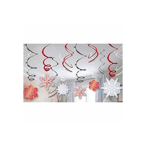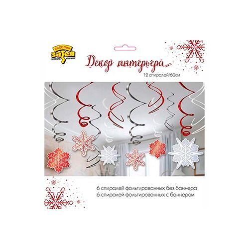 Волшебный новый год и рождество – в кружении искристых снежинок и роскоши алого цвета. Пусть все желания сбудутся! Украсьте дом сере бряными, алыми и белыми спиралями со снежинками! В наборе 6 простых блестящих спиралей и 6 - с картинками. Длина спиралей от 46 до 60 см. Каждая спираль снабжена колечком для крепления к потолку или стене.