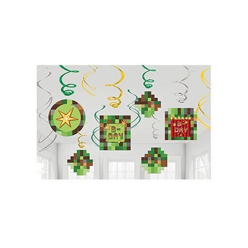 Для любителей стратегий в духе Minecraft – ставьте блоки, ищите приключения, создавайте свою реальность и отмечайте дни рождения в стиле игры! В упаковке 6 спиралей с подвесными баннерами и 6 простых фольгированных спиралей. Вы можете варьировать длину спиралей от 46 до 60 см. Каждая спираль снабжена колечком для крепления.