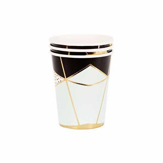 Стильные бумажные стаканчики с золотым фольгированным тиснением объемом 250мл, 6шт в упаковке.