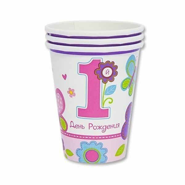 Цветы и сердца, божьи коровки, и, конечно, бабочки. Вашей красавице уже 1 год! В упаковке 8 ламинированных бумажных стаканов объемом 270 мл.