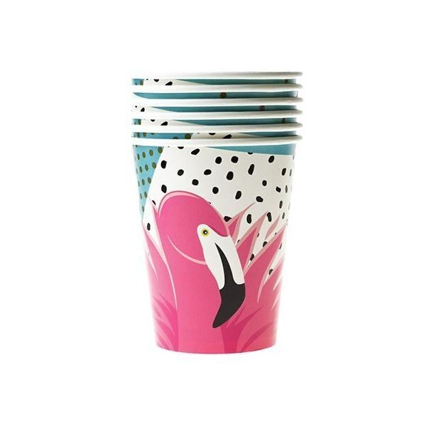 Розовый фламинго на фоне приглушенной лазури и пальмовых ветвей – тропический рай, где море и небо бескрайни, жизнь безмятежна, веселье бесконечно! Приглашайте друзей на Фламинго-пати! В упаковке 6 бумажных стаканов объемом 250 мл.