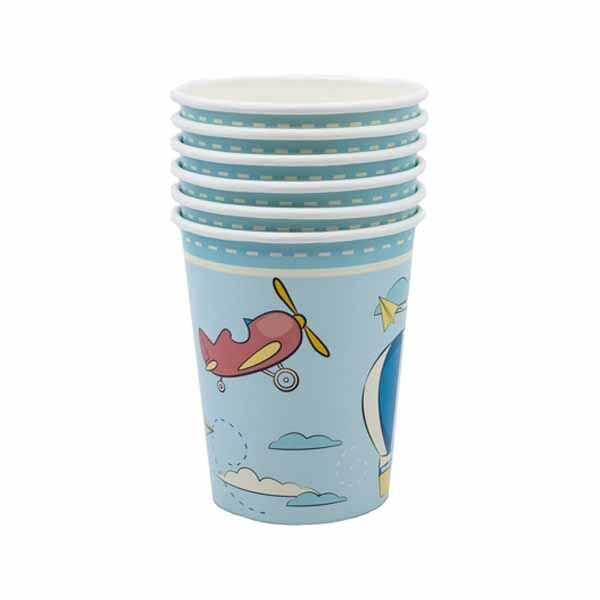 Коллекция для юных техников и воздухоплавателей. Спокойные небесные цвета, воздушные шары и змеи, бипланы и монопланы для тех, кто разбирается в аэродинамике, и просто любит винтажные аэропланы. В упаковке 6 бумажных стаканчиков объёмом 250 мл.