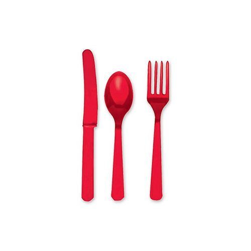 Столовые приборы цвета красного яблока (нож, вилка, ложка). Набор рассчитан на 8 персон.