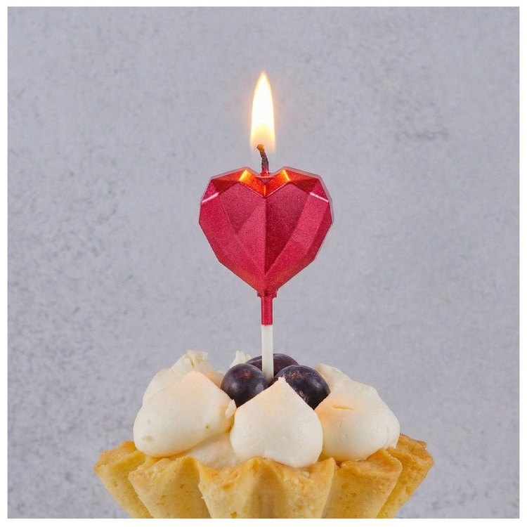 Декоративное украшение стола. Красная металлизированная свеча на пике в форме сердца – отличное решение для декорирования торта, капкейка, пирожного и других десертов на Свадьбу, День всех влюбленных, 8 Марта и т.д. Размер свечи 3,5см + 7см пика.