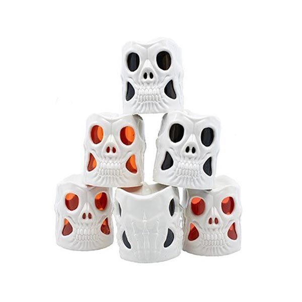 Мигающая светодиодная свеча в форме черепа - настоящая находка для оформление интерьера на Хеллоуин. Работает от батареек (входят в комплект).