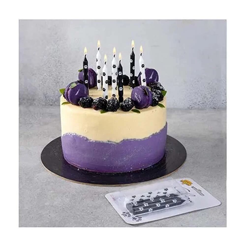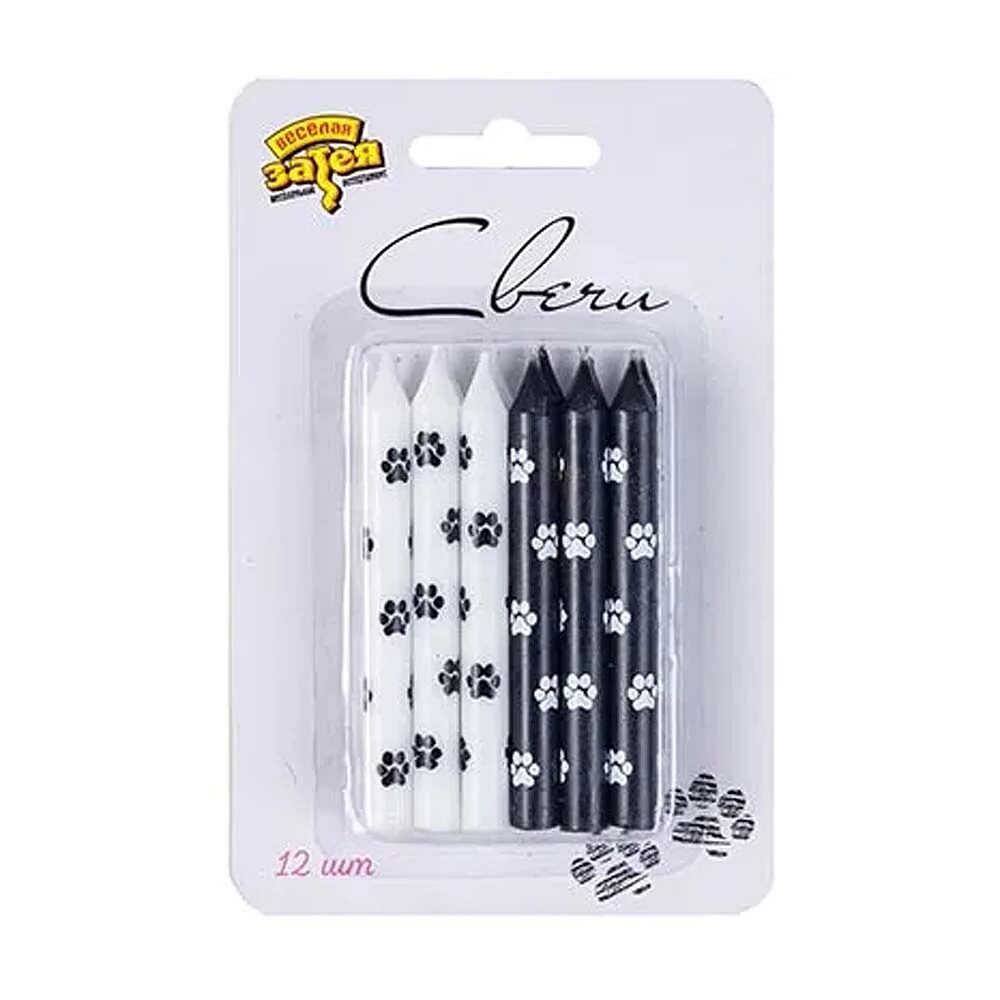 Черные и белые свечи с кошачьими лапками. Высота свечей 8см, в упаковке 12 штук, выполнены из парафина.