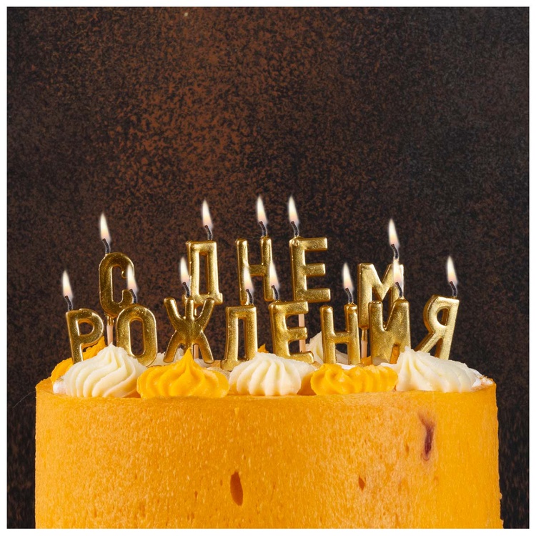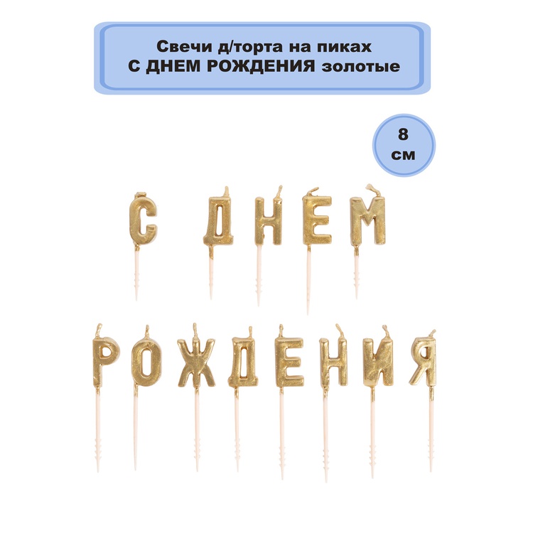 Поставьте на торт блестящие свечи-буквы и преподнесите его имениннику! И все-таки не забудьте про поздравительную песню - даже самые блестящие свечи никогда не заменят голосов близких и друзей! Свечи закреплены на удобных пиках с зазубринками, благодаря которым вы быстро и аккуратно установите свечи на торт. Свечи-надпись можно дополнить золотыми цифрами.