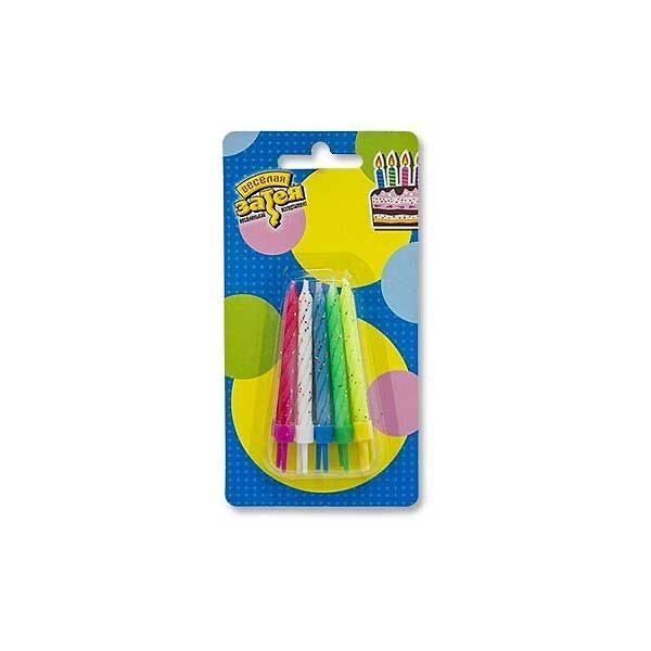 День рождения, Новый год, любое празднество украсят свечи для торта с подставками. Цветные свечи (блеск) - изумительный праздничный аксессуар, декор для десерта и торта. Высота свечей 6 см, изготовлены они из стеарина. Прекрасно сочетаются с серией товаров для пик "ника и столовых приборов ""Шары"" - стаканов, салфеток, тарелок. В комплекте 10 свечей."