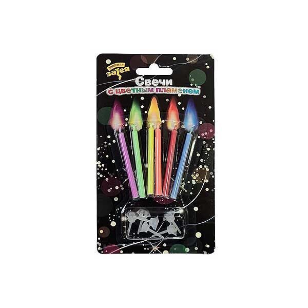 Декоративное украшение праздничного стола. Цвет пламени каждой свечи соответвует цвету свечи.