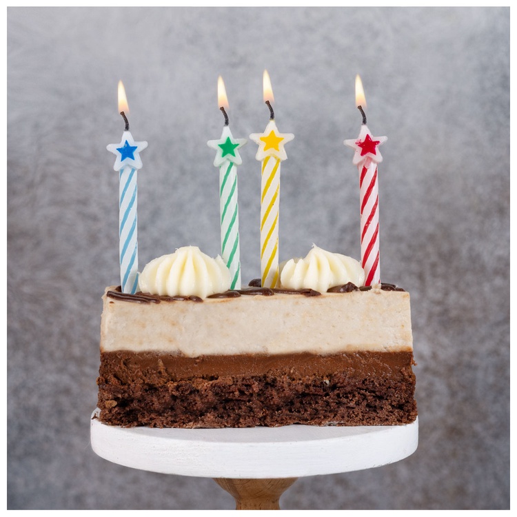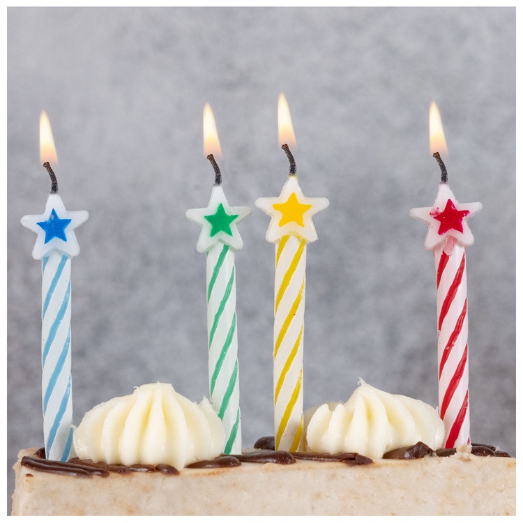 Декоративное украшение праздничного стола. Разноцветные свечи со звездой отличное решение для декорирования торта, десерта ко Дню рождения, Юбилею, Новому году. Стеарин, оригинальный дизайн. Высота свечей 6см, в упаковке 8 штук без подставок.