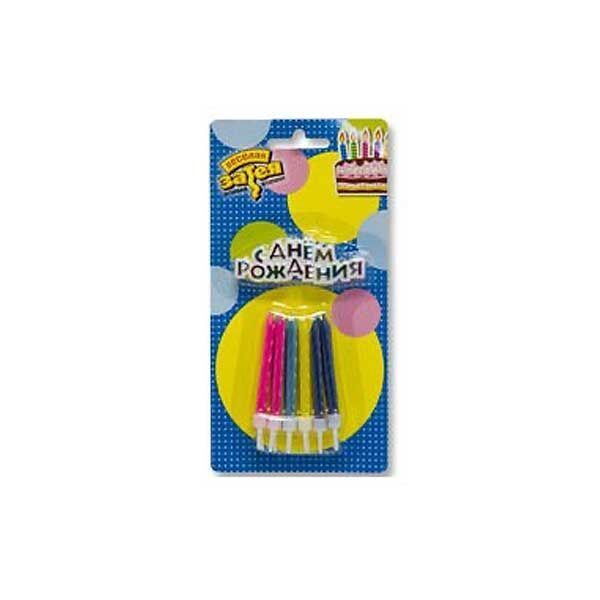Декоративное украшение праздничного стола. Разноцветные свечи и пластмассовая подставка "С Днем Рождения" отличное решение для декорирования торта, десерта ко Дню рождения. Стеарин, оригинальный дизайн. В упаковке 12 свечей и подставка.