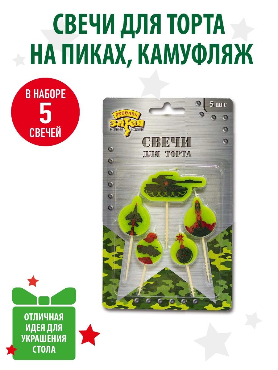 Свечи на пиках Камуфляж, 5 штук