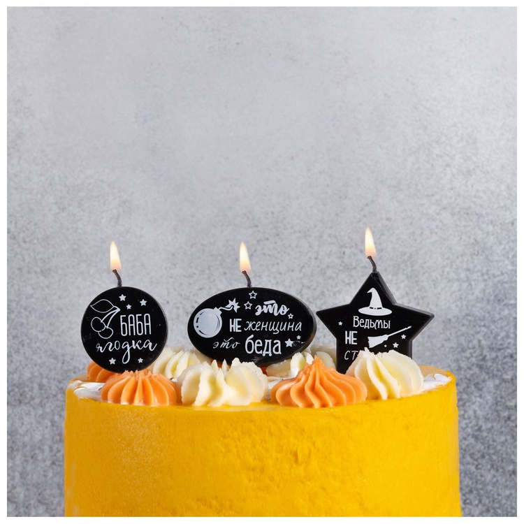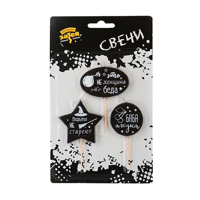 Это не женщина - это Беда! Черно-белые свечи с прикольными надписями для самых великолепных дам! В упаковке 3 свечи на пиках, которые легко поставить в торт или другую выпечку.