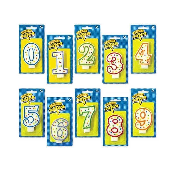 Декоративное украшение стола. Свечи в форме цифр. Яркий, модный дизайн - Горошек. РИСУНОК С ДВУХ СТОРОН свечи! Отличное решение для декорирования торта, десерта ко дню рождения или юбилею. Стеарин, оригинальный дизайн. Высота свечи-цифры 7,6см.