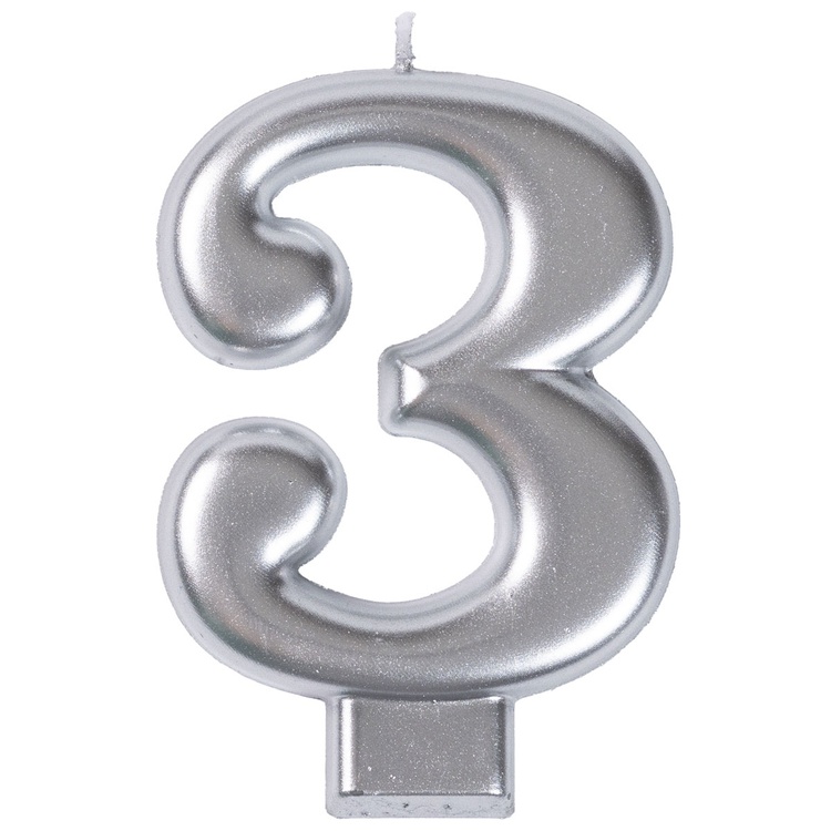 Свечи-цифры Серебряные, 8 см.