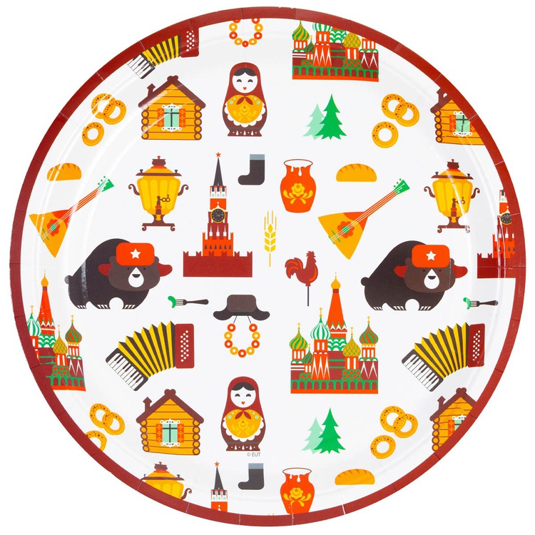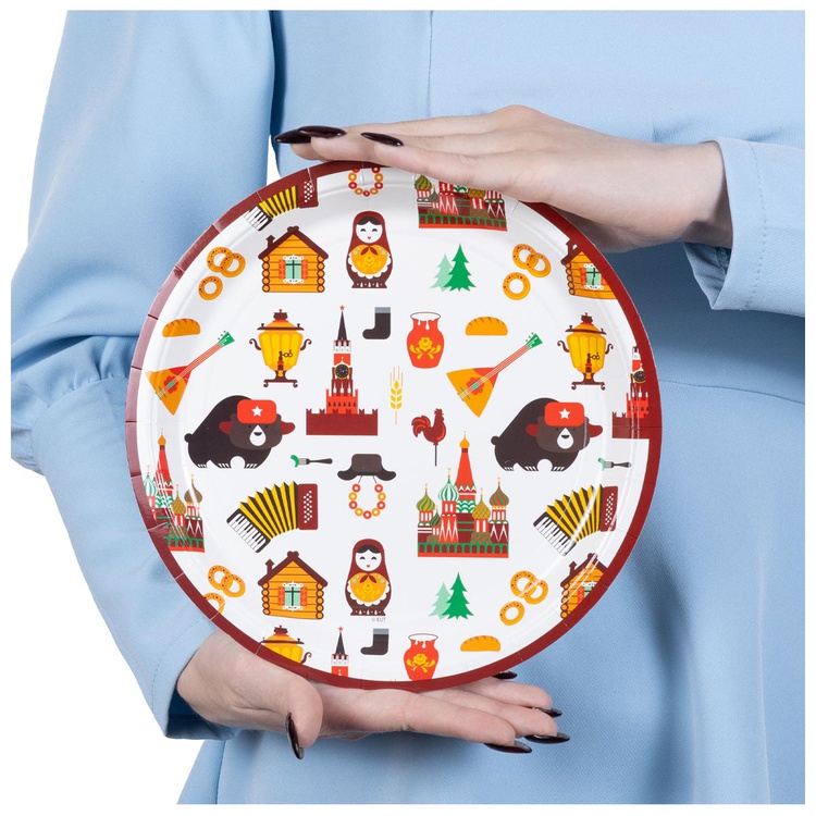 Бумажная тарелка, 23см, 6 штук в упаковке. Используется совместно с другими элементами коллекции как украшение стола или по своему непосредственному назначению.