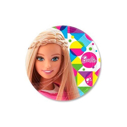 Барби в ретро-стилистике с яркими шевронами и горошками - коллекция для любителей современного конструктивизма и классики рекламы. В упаковке 8 больших ламинированных тарелок диаметром 23 см.