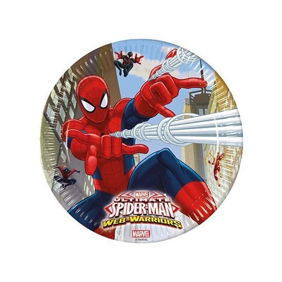 Он следит за тобой, Великий Человек-Паук! Устрой вечеринку для друзей в стиле комиксов и фильмов о супер-герое! В упаковке 8 бумажных ламинированных тарелок размером 23 см.