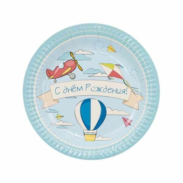 Коллекция для юных техников и воздухоплавателей. Спокойные небесные цвета, воздушные шары и змеи, бипланы и монопланы для тех, кто разбирается в аэродинамике, и просто любит винтажные аэропланы. В упаковке 6 бумажных тарелок размером 23 см.