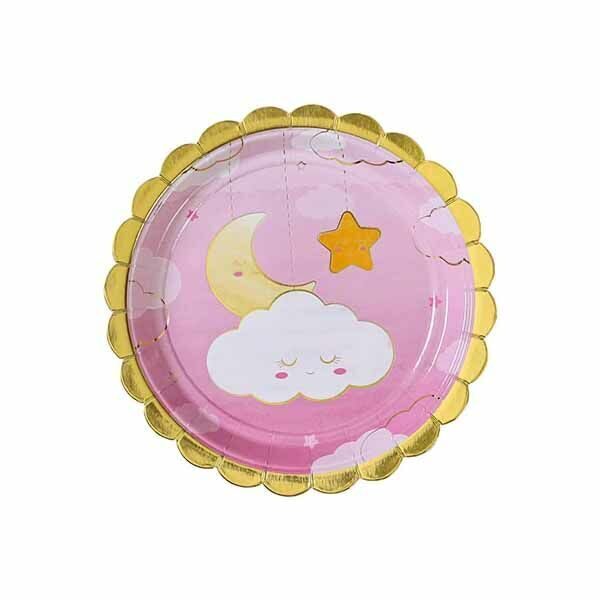 Спящие облака и звёзды, нежно хранящие самые светлые мечты и грёзы малышей! Мягкие оттенки розовой ванили и небесно-голубого, подчеркнутые тонкими золотыми нитями. В упаковке 6 розовых тарелок с золотой каймой, размер тарелок 17см.