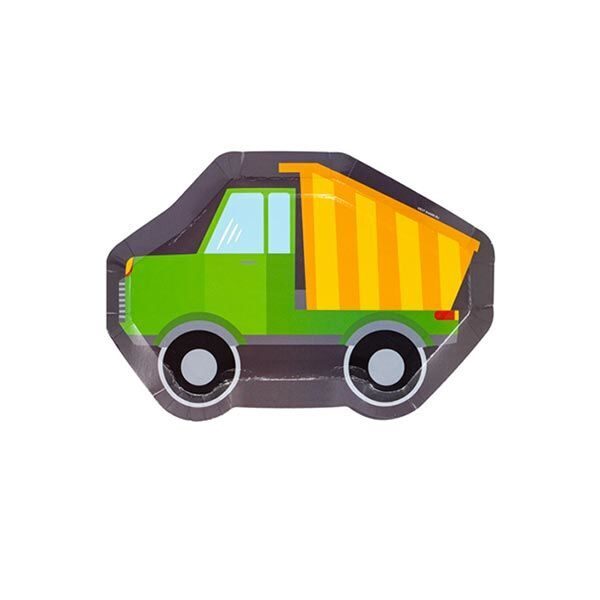 В упаковке 6 фигурных бумажных тарелок Самосвал размером 25 см.