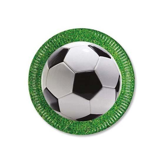 Зеленый газон и летящий прямо в ворота мяч! Г-О-О-О-Л! В упаковке 8 больших ламинированных тарелок диаметром 23 см.