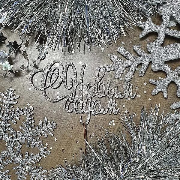 Деревянный топпер с надписью "С Новым Годом" для украшения праздничных десертов и композиций. Общая высота топпера 27 см. Длина баннера с надписью - 26см, высота - 9см. В комплекте представлены баннер и палочка (на баннере есть отверстие, в которое вам нужно вставить палочку). Баннер украшен серебряным глиттером (нанесение с одной стороны).
