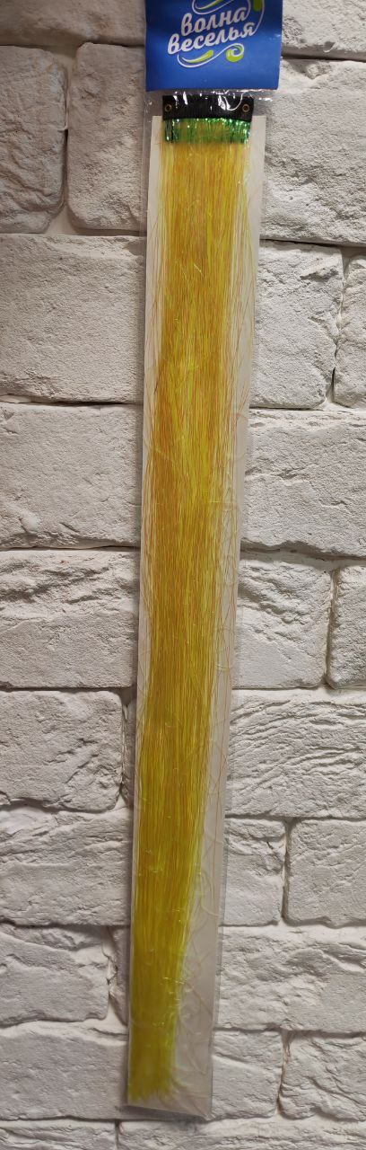 Цветная прядь для волос - дождик, на заколке, Желтый Хамелеон