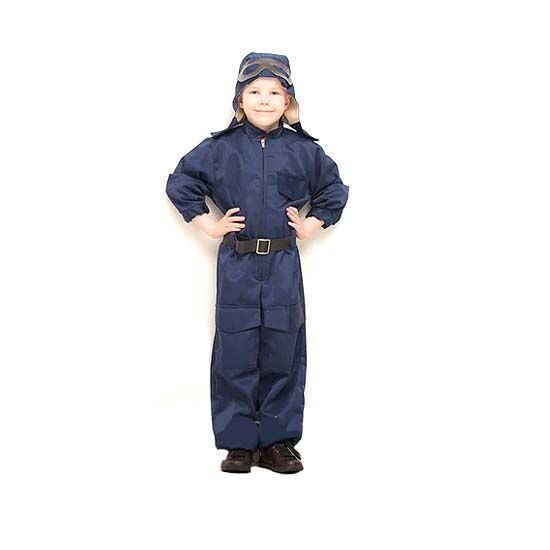 Комбинезон с большими карманами и шлем - это то, что нужно для создания образа советского военного летчика. Этот детский костюм стилизован под военную форму советского летчика и подойдёт для различных мероприятий военной тематики: празднования Дня Победы, а также Дня защитника Отечества. Ваш маленький солдат покорит сердца всех вокруг, ведь в его глаза так и читается стремление ринуться в бой и защитить свою страну.