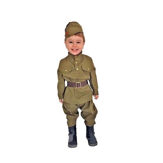 Пилотка, гимнастерка с галифе и ремнем - это то, что нужно для создания образа лихого военного СОЛДАТА. Этот детский костюм стилизован под военную форму СОЛДАТА и подойдёт для различных мероприятий военной тематики: празднования Дня Победы, а также Дня защитника Отечества. Ваш маленький солдат покорит сердца всех вокруг, ведь в его глаза так и читается стремление ринуться в бой и защитить свою страну.