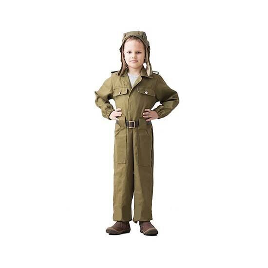 Комбинезон и шлем - это то, что нужно для создания образа советского военного танкиста. Этот детский костюм стилизован под военную форму советского танкиста и подойдёт для различных мероприятий военной тематики: празднования Дня Победы, а также Дня защитника Отечества. Ваш маленький солдат покорит сердца всех вокруг, ведь в его глаза так и читается стремление ринуться в бой и защитить свою страну.