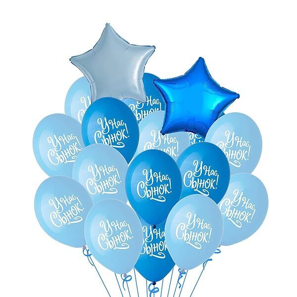 Яркая композиция из воздушных шаров синего цвета. Воздушные шарики на рождение Сына. Отличный подарок на вечеринку по случаю рождения мальчика. Подарок жене на первый годик рождения мальчика.