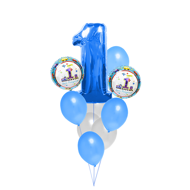 7 латексных шаров, 2 фольгированных шара и цифра "1"