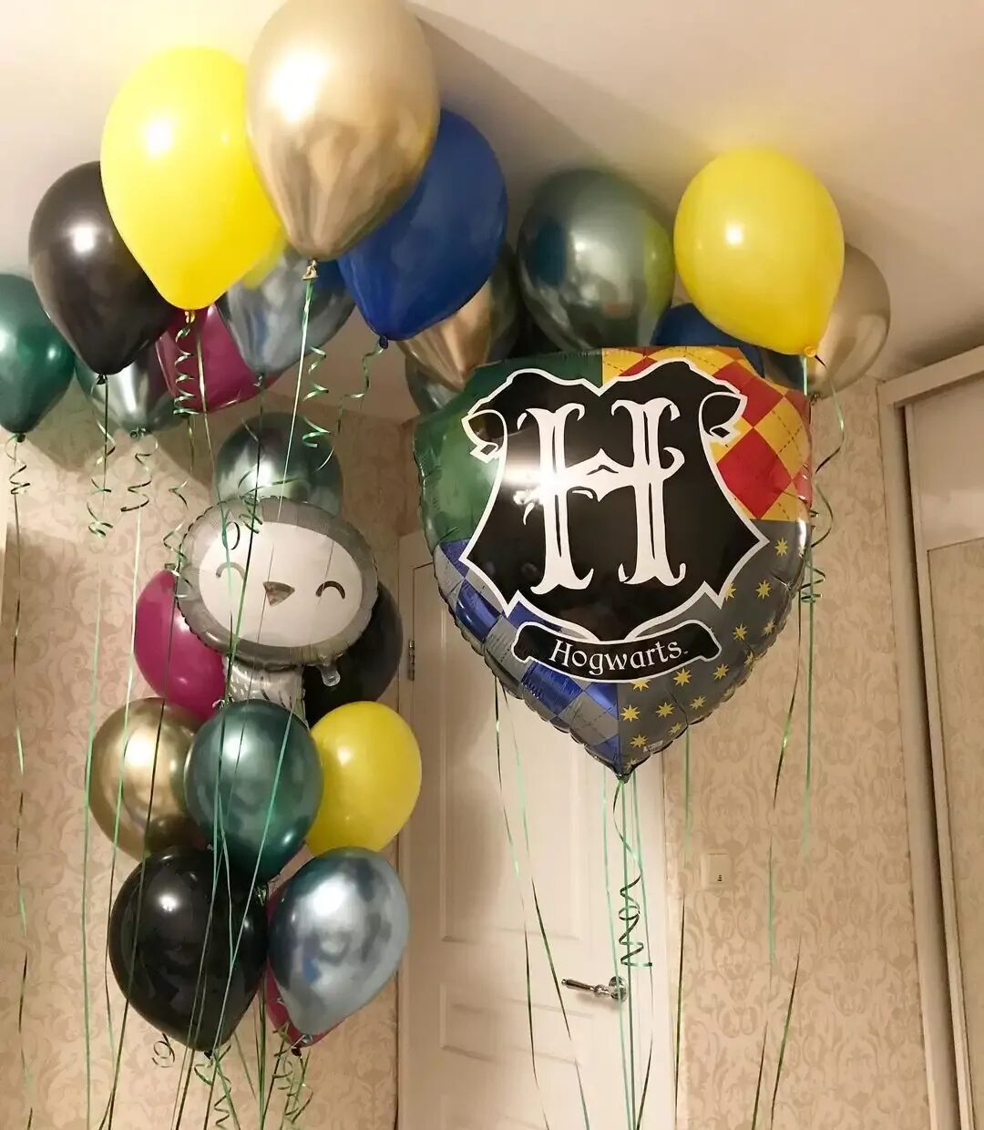 Большая композиция из воздушных шаров в стилистике Гарри Поттер. Отличная идея украсить день рождение, именины или праздничную вечеринку в стиле Гарри Поттер. Сделайте красивый подарок с такой яркой композицией из воздушных шаров. Воздушные шары Гарри Поттер для мальчиков и девочек.