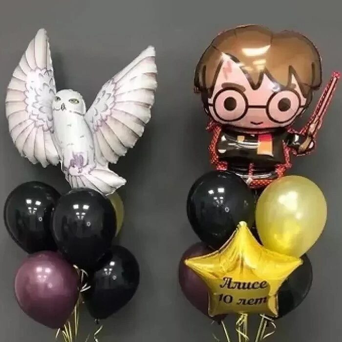 Большая композиция из воздушных шаров в стилистике Гарри Поттер. Отличная идея украсить детский день рождение, именины или праздничную вечеринку в стиле Гарри Поттер. Сделайте яркий подарок такой яркой композицией из воздушных шаров. Воздушные шары Гарри Поттер для мальчиков и девочек.