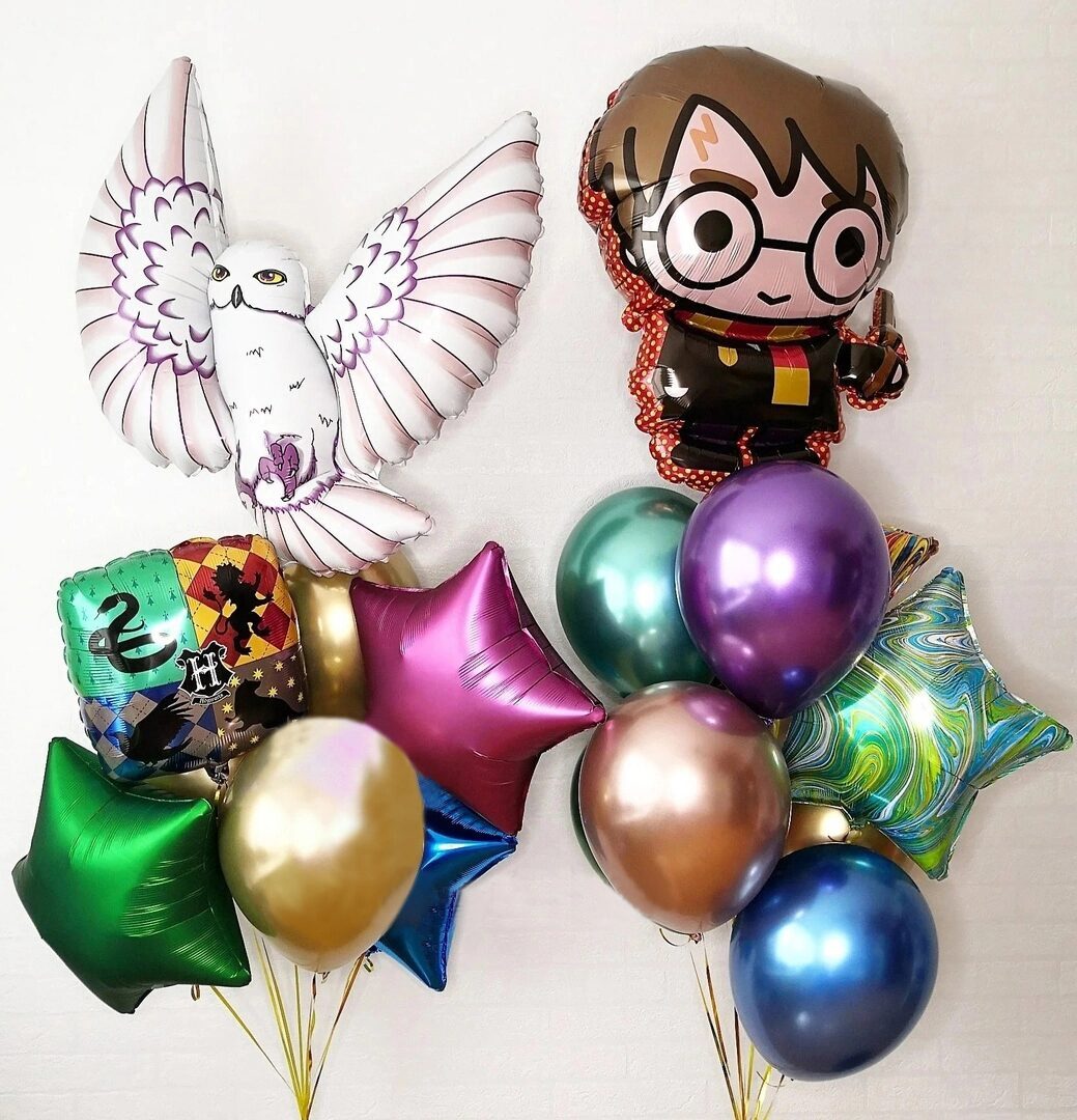 Большая композиция из воздушных шаров с шарами фигурами Совы и Гарри Поттера. Отличная идея украсить день рождение, именины или праздничную вечеринку в стиле Гарри Поттер. Подарок мальчику или девочке день рождение.