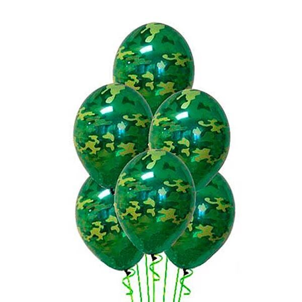 Высококачественные латексные шарики с камуфляжным нанесением - отличное дополнение Дня защитника Отечества и профессиональных праздников нескольких родов войск.