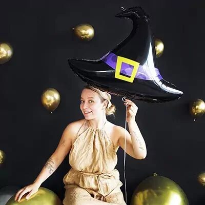 Воздушный шар фигурный Шляпа Ведьмы, Шляпа Гарри Потера, размер шара - 70см. Отличный подарок на праздник Хэллоуин для мальчиков и девочек. Украшение детской фотозоны в стиле Хэллоуин. Шарик надувается гелием и продается уже в надутом виде.