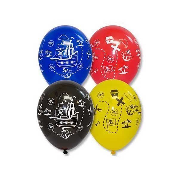 Пиратские фрегаты, якоря, черепа и карта сокровищ - всё уместилось на 1 шаре! Рисунок расположен по кругу на разноцветных шарах пиратских цветов.