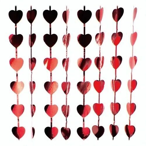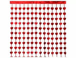 Декоративное украшение из красной фольгированной пленки в виде сердец. Размер 1х2м.