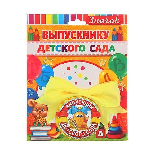 Значок с бантом «Выпускник детского сада», колокольчик, d=4,5 см